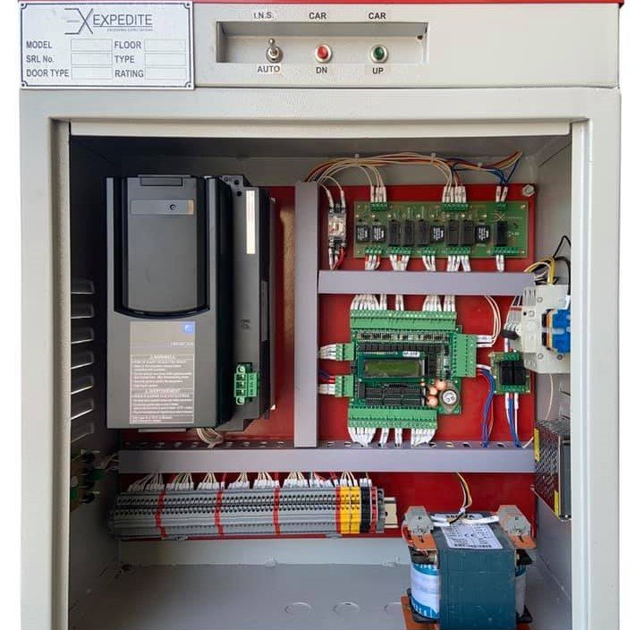 The elevator control panel holds all the power supply units, orchestrates all the operations, and ensures safety. Other functions like registering or canceling the car calls, door control, measurement of the carload, and the speed are handled by the elevator control panels.